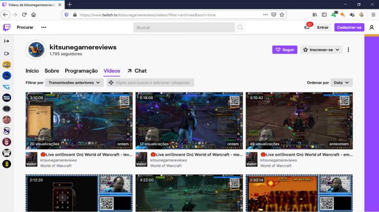 Em 30 de Janeiro de 2017 comecei a fazer lives pela Twitch onde estou até hoje de seg a sexta e atualmente das 21 as 23 podendo haver a live da matina onde começo normalmente as 0:00 e indo até as 2:00 am. Durante o dia fica complicado para mim, mas pode ser que aconteça, nesse caso costumo avisar nas redes sociais